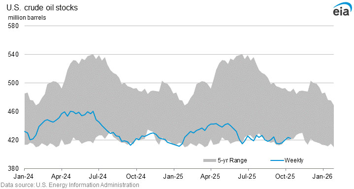 - Total crude stockpiles, including the Strategic Petroleum Reserve (“SPR”), increased by 10.7 million barrels month over month to 831.4 million barrels.