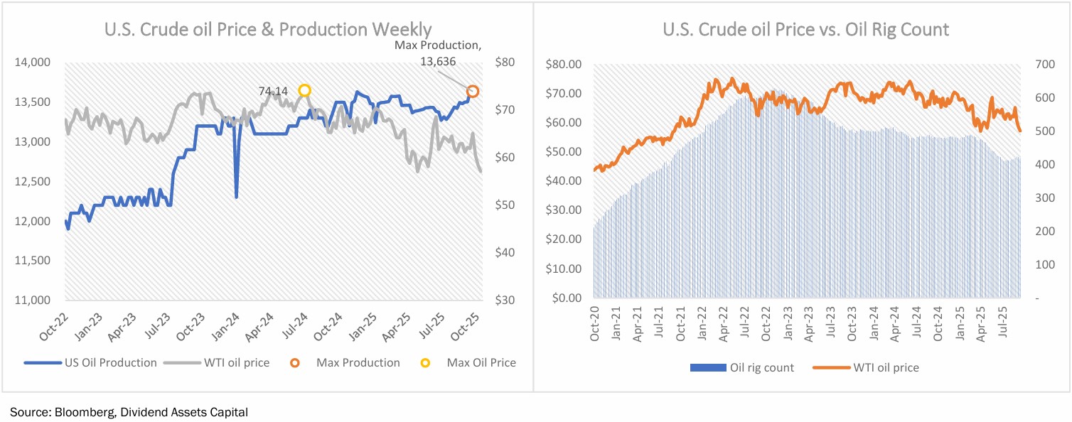 U.S. Total Crude Oil Production and U.S. Crude Rotary Rig Count (as of October 17, 2025):