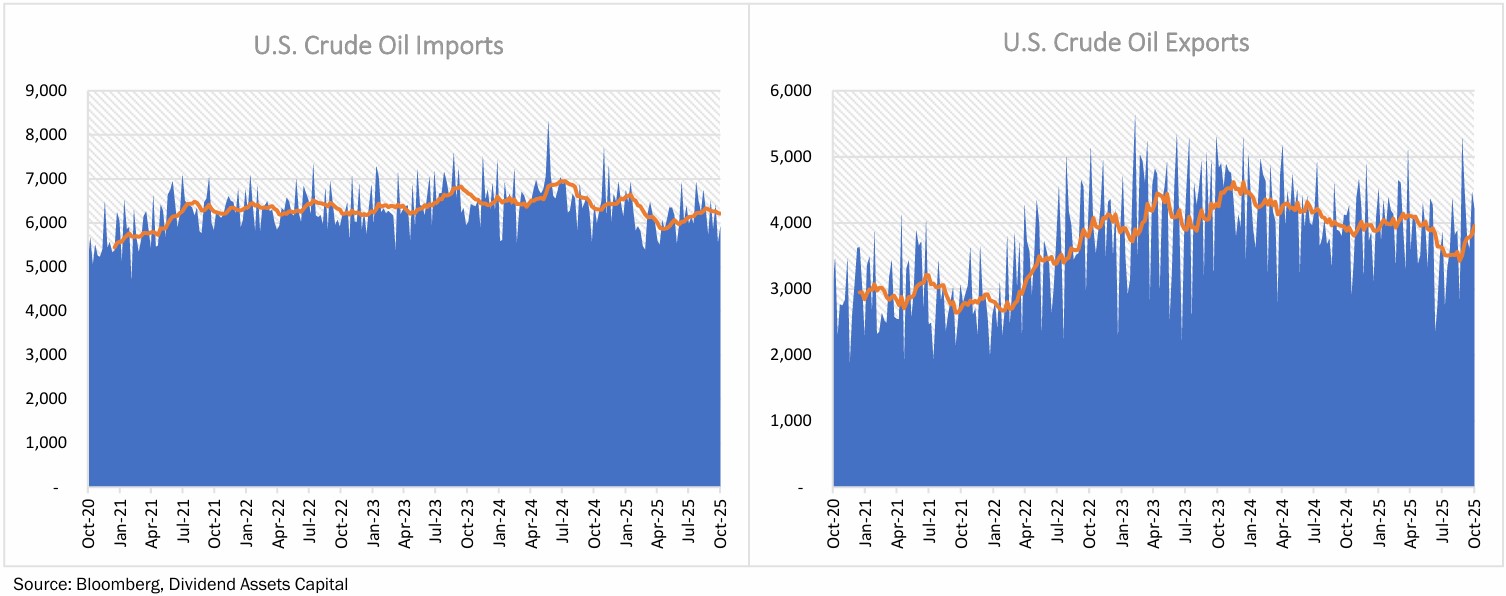 - U.S.crudeoil4-weekaverageexportswere4.0mmbbl/d,down2.3%monthovermonth.