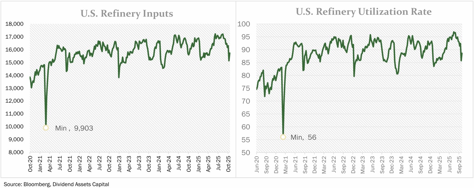 U.S. Refinery Inputs and Utilization Rates (as of October 17, 2025):